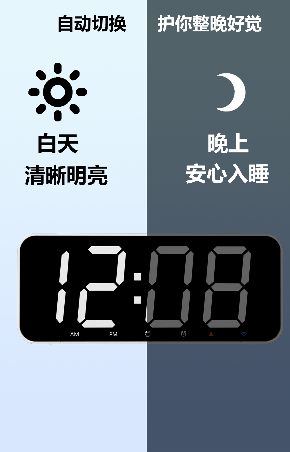 大屏时钟支持12\/24小时制可连WIFI夜间模式天气播报可接无线门铃