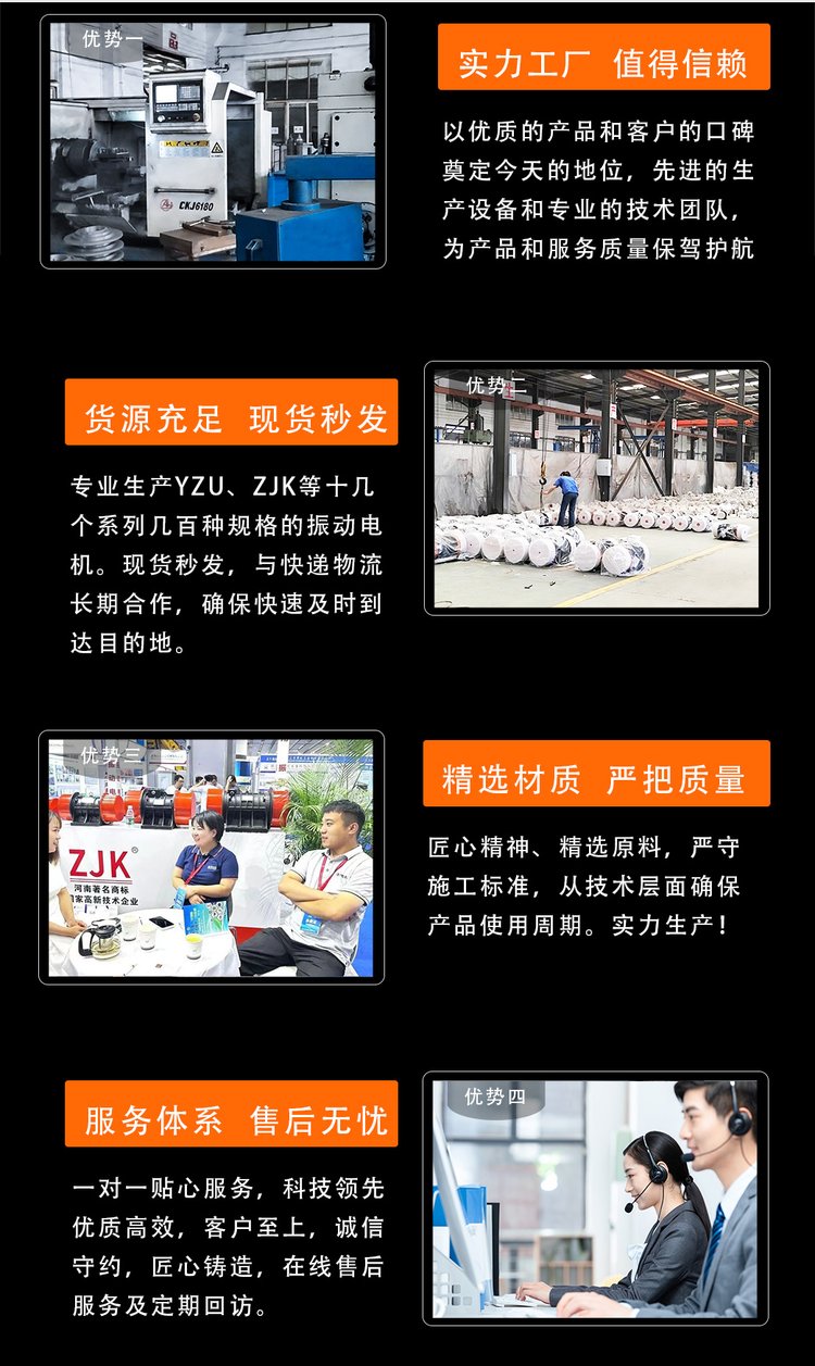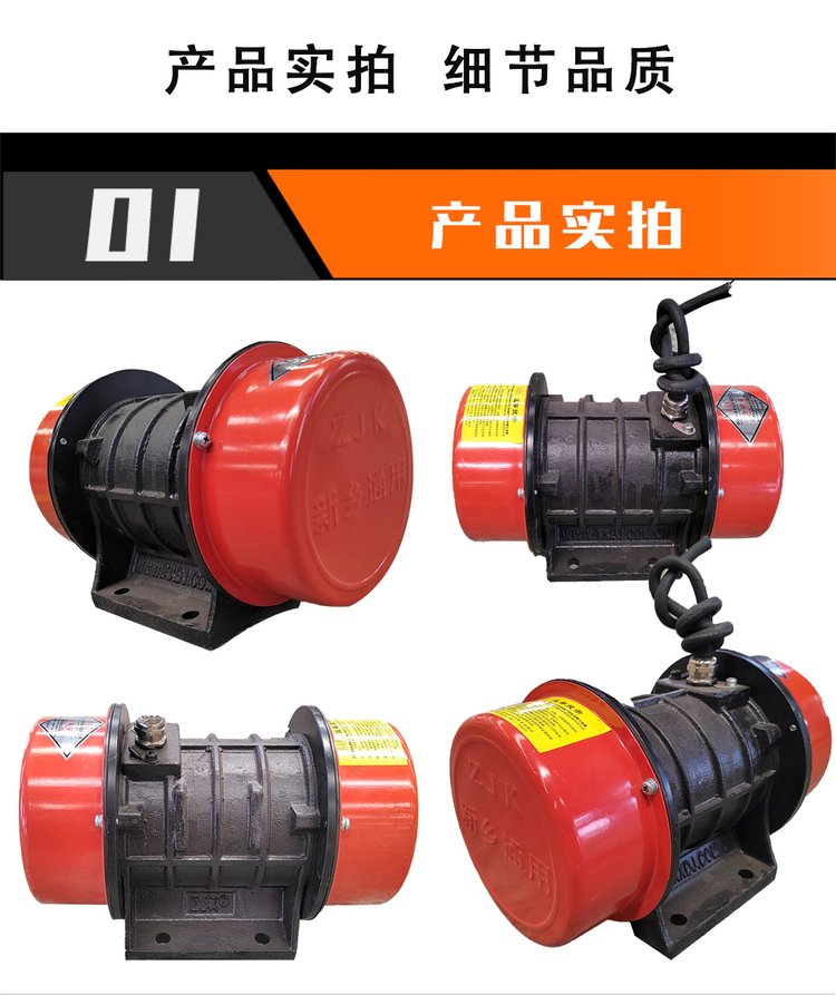 体积小,重量轻,激振力大,振幅稳定,激振力可无级调整,机壳全密封,可以在任何无防爆要求的粉尘条件下工作。防护等级分IP44、IP54、IP55等绝缘等级:B级或F级。工作条件:海拔高度1000米以下,环境温度-15~ 40℃。工作方式为S1(连续定额工作制)。