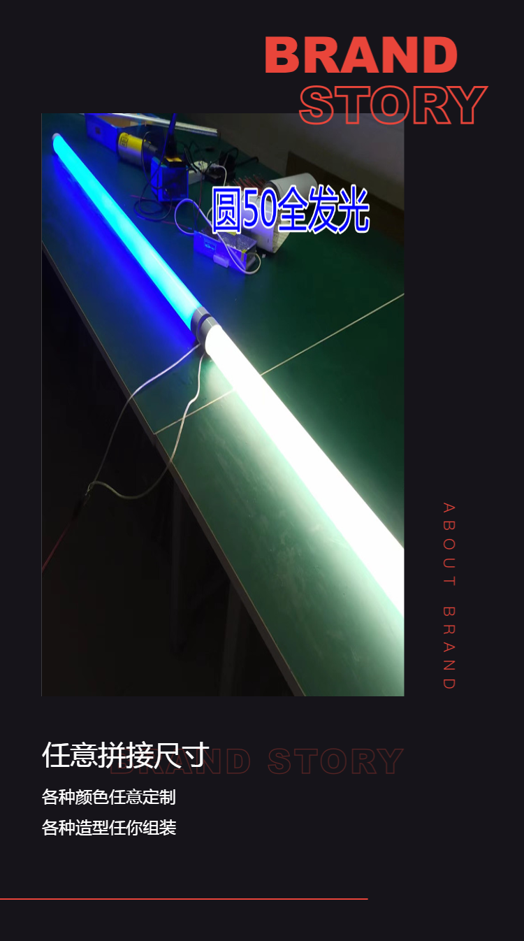 5CM直径360度全发光led圆管灯PC光扩散罩可吊装壁装金属堵头灯管