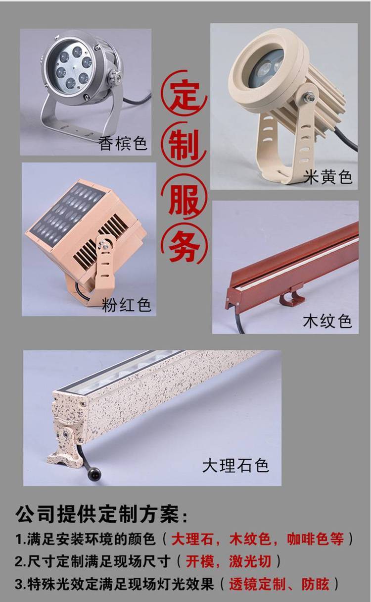 ? ? ?酒店外墙亮化,园林照树,檐口窗沿亮化,雕塑照明,灯具外观体积小,照射距离远,应用
