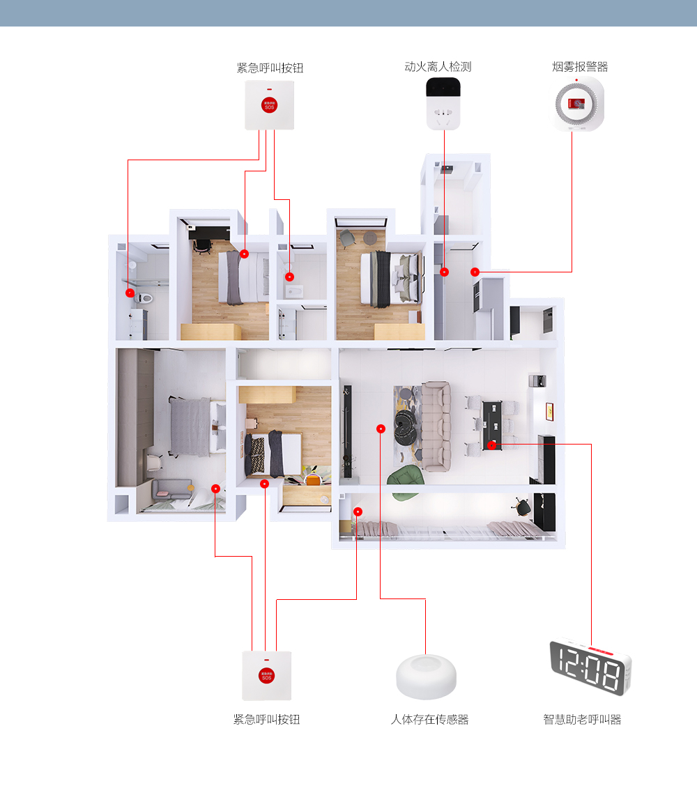 高龄独居老人一键呼叫器SOS求助报警器居家养老呼叫系统大屏监控