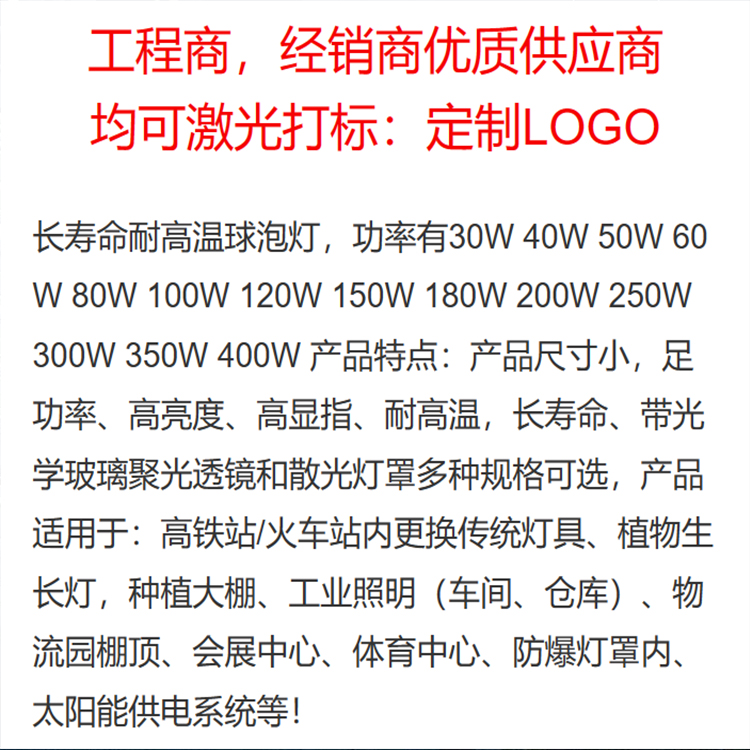应用范围 | 高铁站/火车站内更换传统灯具、植物生长灯,种植大棚、工业照明 | ||