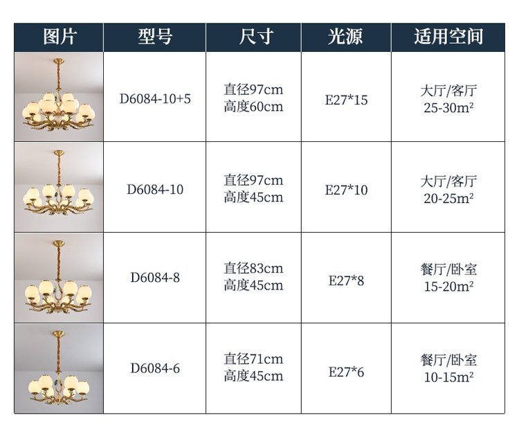 吊灯类型 | 全铜/铜吊灯 | ||