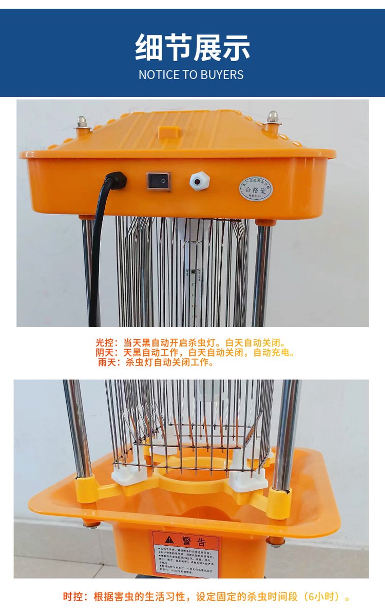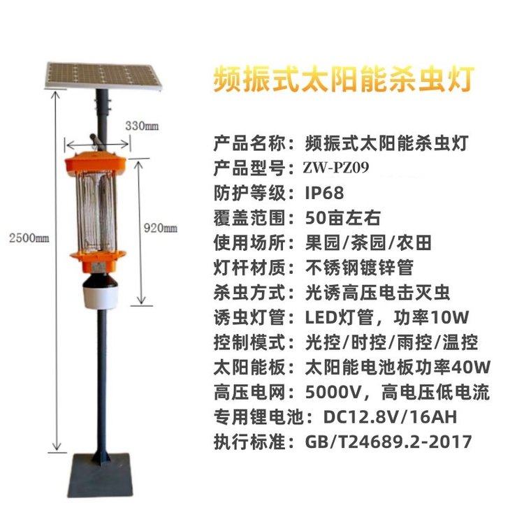 电击式农田养殖灭蚊太阳能频振式杀虫灯PZ09直流高压低功耗