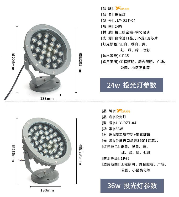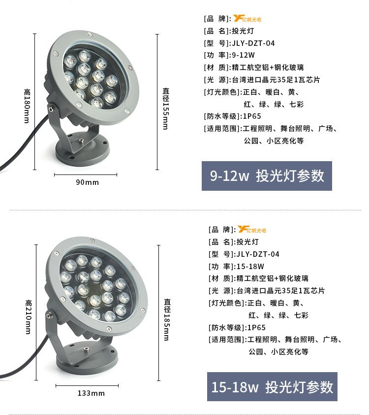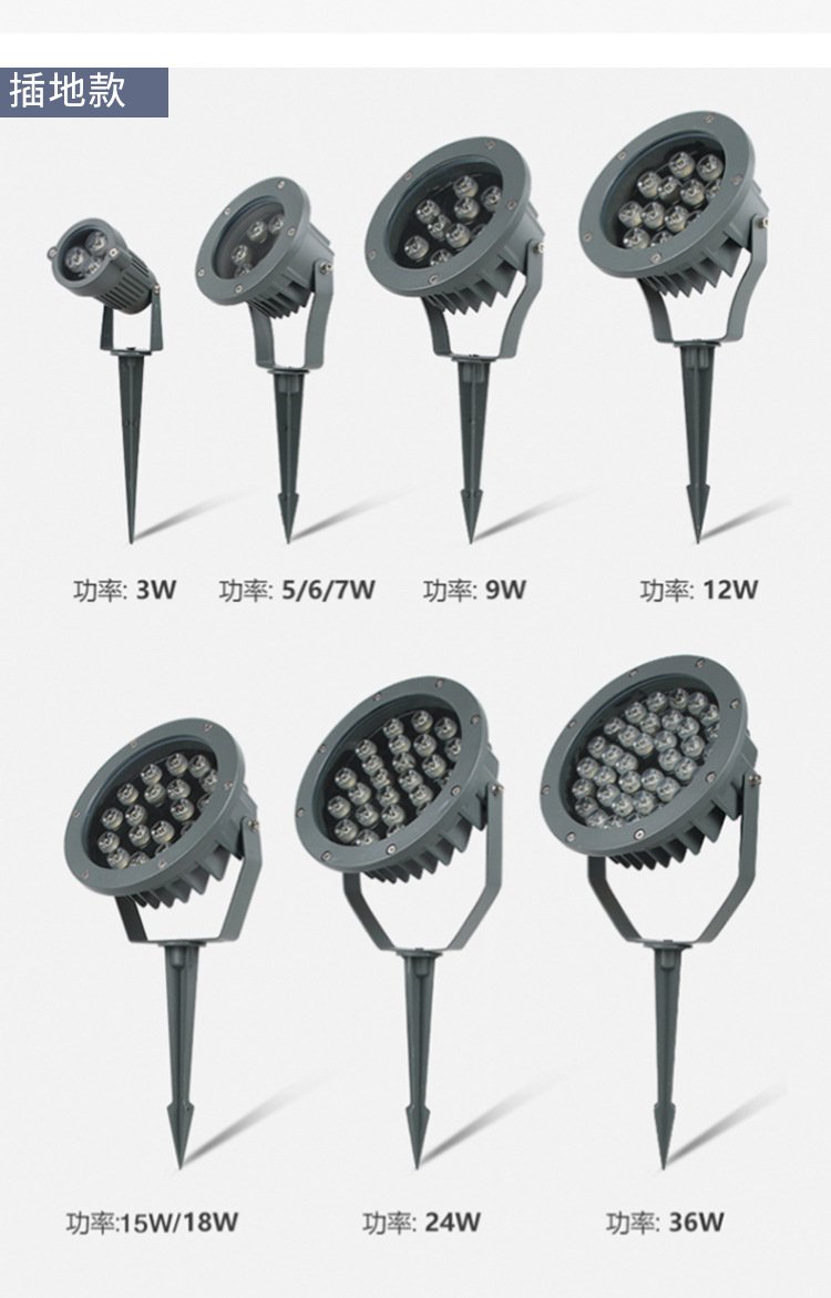 LED投光灯3~48W单色七彩全系列亮化投射灯插地照树灯工程定制亿帆