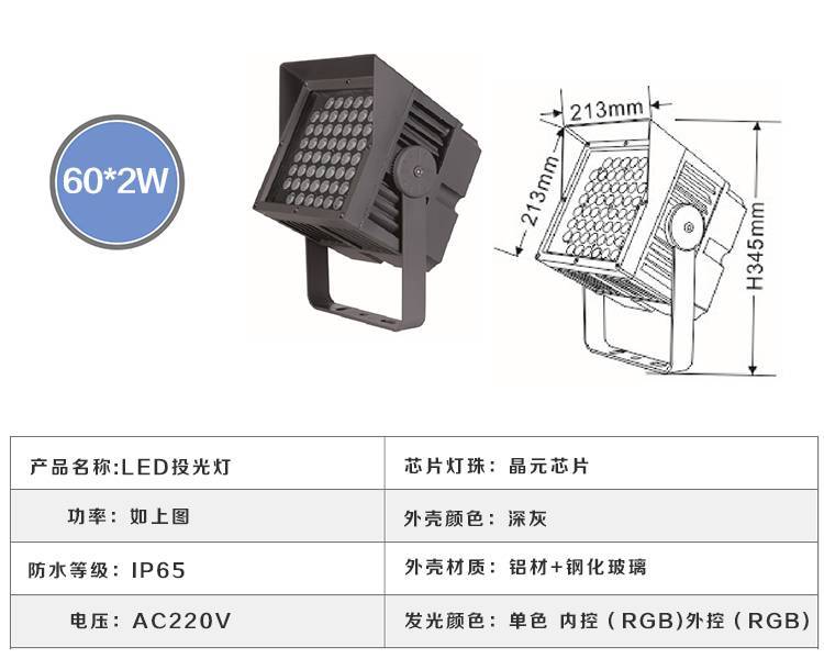 led投光灯用途广,可根据工程项目要求尺寸外观、灯光颜色、灯壳幕墙色定制,