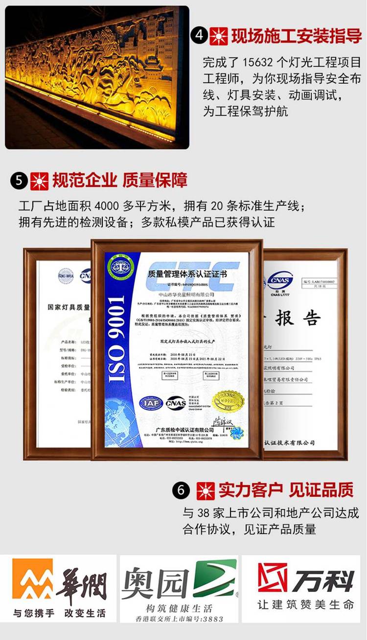 华亮星照明灯具种类齐全有led投光灯、窄光束投光灯、投射灯、防眩投光灯、cob投光灯、插泥照树投光灯、dmx512投光灯、仿真鸟巢投光灯、圆形投光灯、方形投光灯、组合型投光灯、埋地投光灯、迷你投光灯、幕墙色投光灯、半埋式可调角投光灯、抱杆式投光灯、智能遥控投光灯、可调光投光灯、满足各项目用灯需求,可定制.
