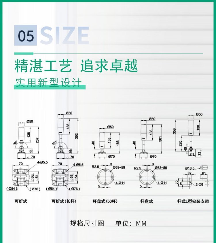 欧恩照明M4T单层三色机床警示灯可折式常亮闪亮带蜂鸣设备报警灯