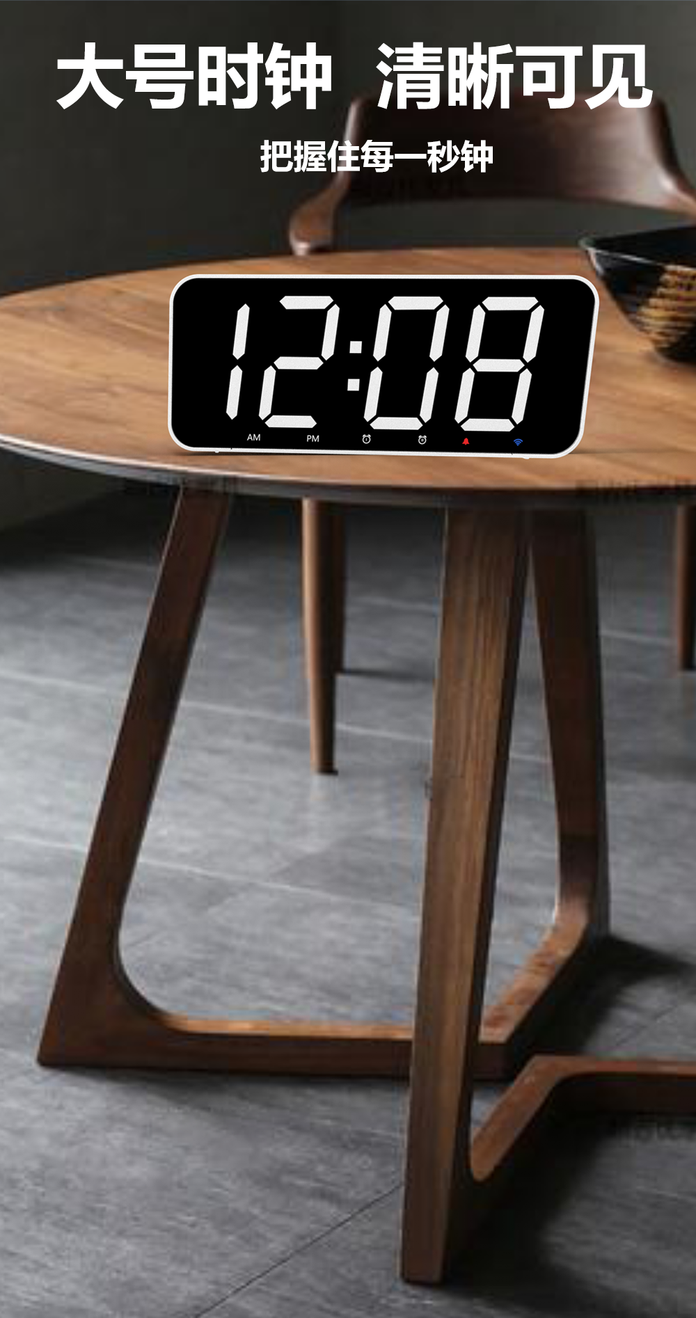 大屏时钟支持12\/24小时制可连WIFI夜间模式天气播报可接无线门铃