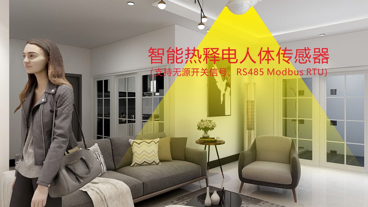 智能热释电人体传感器K69采用四元热释电传感器,检测面积广,准确率更高。宽电压输入8~28V,支持无源开关输出(输出静音无声)、RS485 Modbus RTU输出,可通过IR遥控器调节输出时间、输出脉冲宽度等参数。
