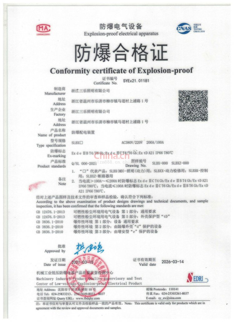 浙江三乐照明有限公司位于东海之滨,风景秀丽的温州雁荡山麓中国电器之都”浙江东清市柳市镇创始于2010年 从事煤矿、石油、化工、舶泊、铁路、电力、等特种防爆照明、固定式 照明、移动式应急照明系列产品的研发、制造销售和服务