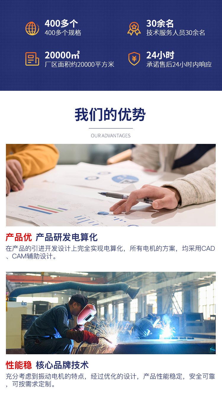 体积小,重量轻,激振力大,振幅稳定,激振力可无级调整,机壳全密封,可以在任何无防爆要求的粉尘条件下工作。防护等级分IP44、IP54、IP55等绝缘等级:B级或F级。工作条件:海拔高度1000米以下,环境温度-15~ 40℃。工作方式为S1(连续定额工作制)。