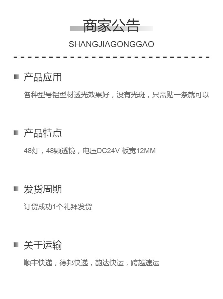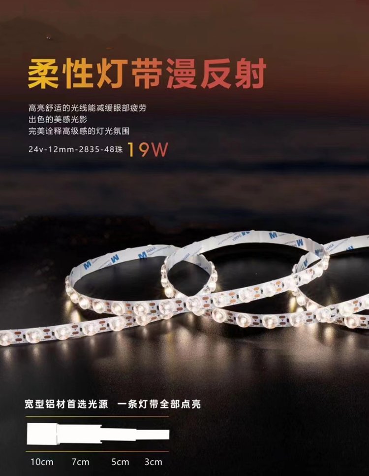 LED柔性漫反射灯带48珠透镜灯条宽铝材专用光源DC24V