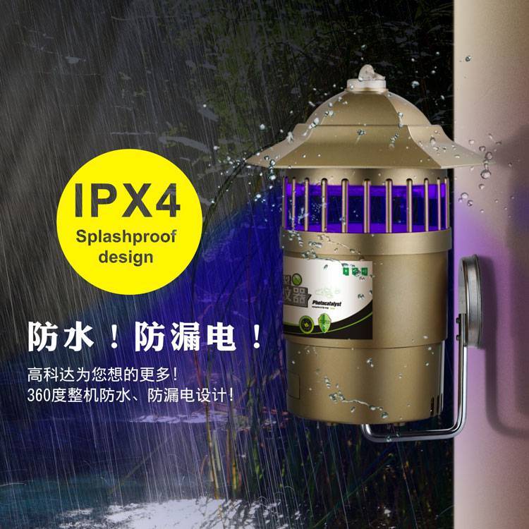 光触媒灭蚊器利用机内的直流防水静音12V涡轮风扇将蚊虫吸入机内迅速脱水致死,安全无污染,无毒副作用。