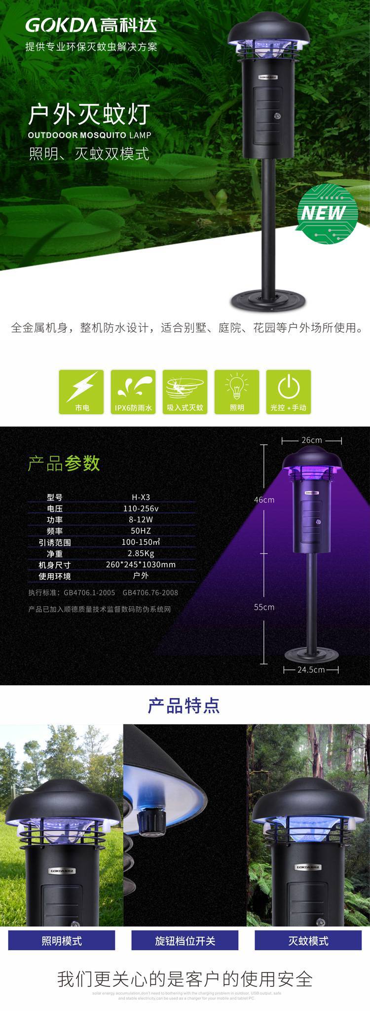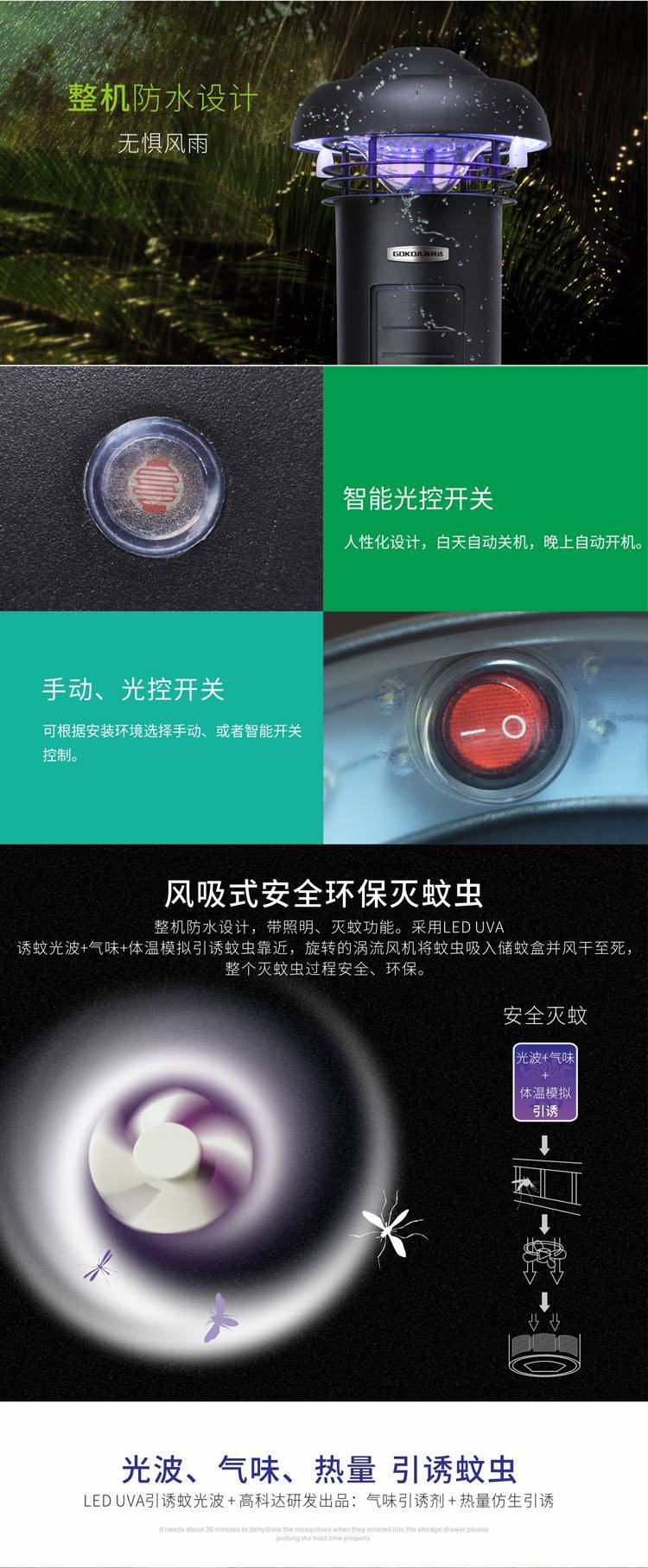 GOKDA高科达户外灭蚊灯H-X3室外防水灭蚊器小区户外灭蚊灯花园灭蚊虫捕蚊器详细介绍