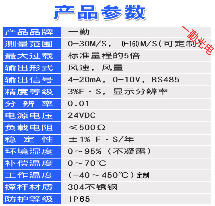 防爆风速变送器 RS485数字高温空气流量传感器 70M/S一勤风量计 是否支持加工定制 | 是 | ||