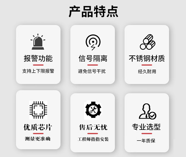 3、具有反向保护、限流保护电路,在安装时正负极接反不会损坏变送器,异常时变送器会自动限流