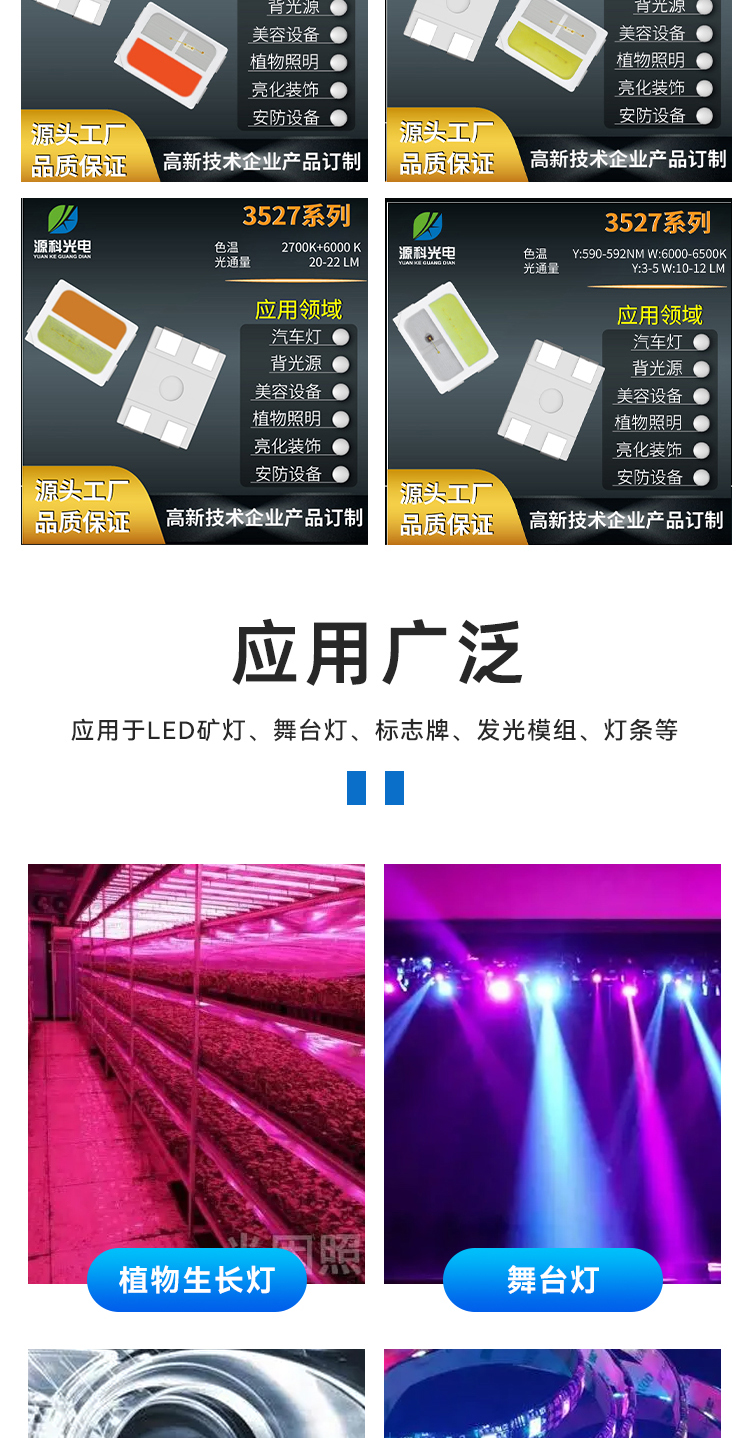 使用场景 | LED贴片灯珠、LED发光二极管、LED灯具、LED集成光源、LED车灯光源 | ||