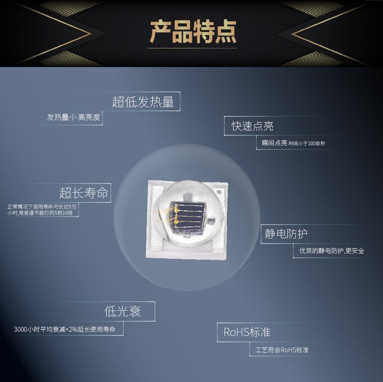 1450nm红外灯珠1400nm机器视觉光源隐裂检测3535大功率LED灯珠