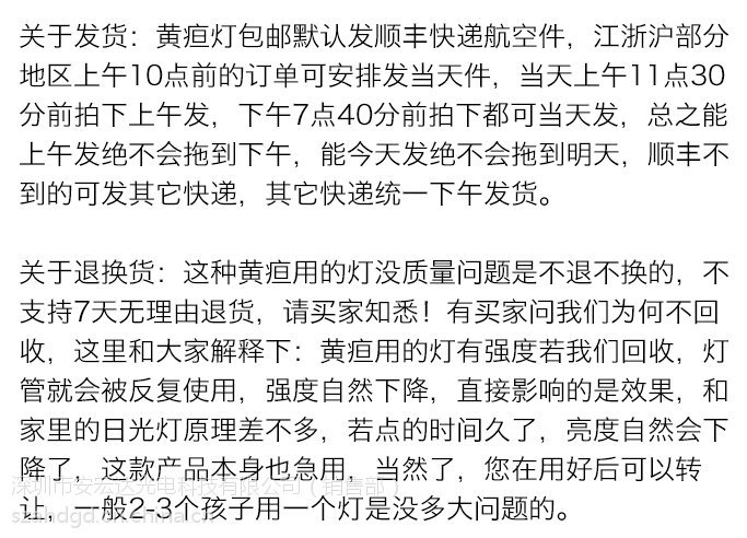 特别提示:本产品是针对黄疸的,因为治黄疸需要的时间不长,所以本产品不是质量问题一概不退不换(不接受七天无理由退货),如介意的买家慎拍!谢谢理解!
