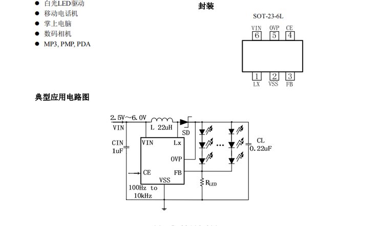 应用领域 | 移动电话、PDA、 数码相机等电子产品的背光驱动 | ||