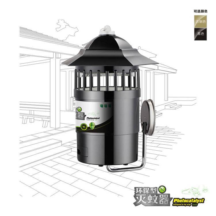 光触媒灭蚊器利用机内的直流防水静音12V涡轮风扇将蚊虫吸入机内迅速脱水致死,安全无污染,无毒副作用。