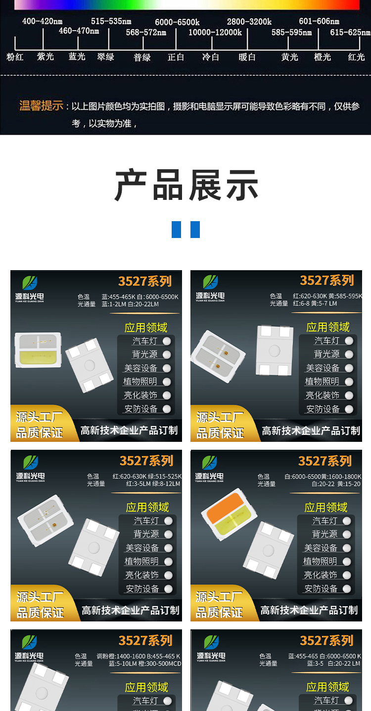 使用场景 | LED贴片灯珠、LED发光二极管、LED灯具、LED集成光源、LED车灯光源 | ||