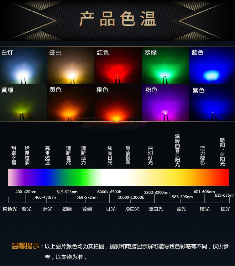 色温区间 | 红 | 620-630绿 | 515-525蓝 | 455-465 NM |