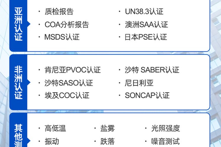 其他认证 | CE认证、RoHS、FCC、UKCA等 | ||