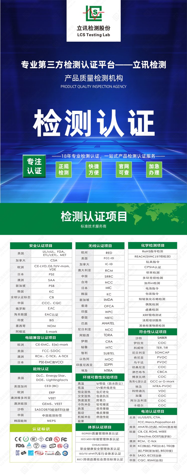 测试地址 | 深圳宝安区立讯检测实验室 | ||