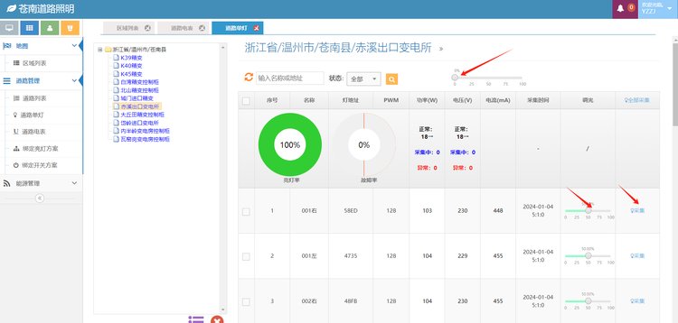 编辑好各灯具的亮灯策略,下发到集中器,让集中器自动执行,管理好每盏灯到什么时间点以什么样的亮度工作。