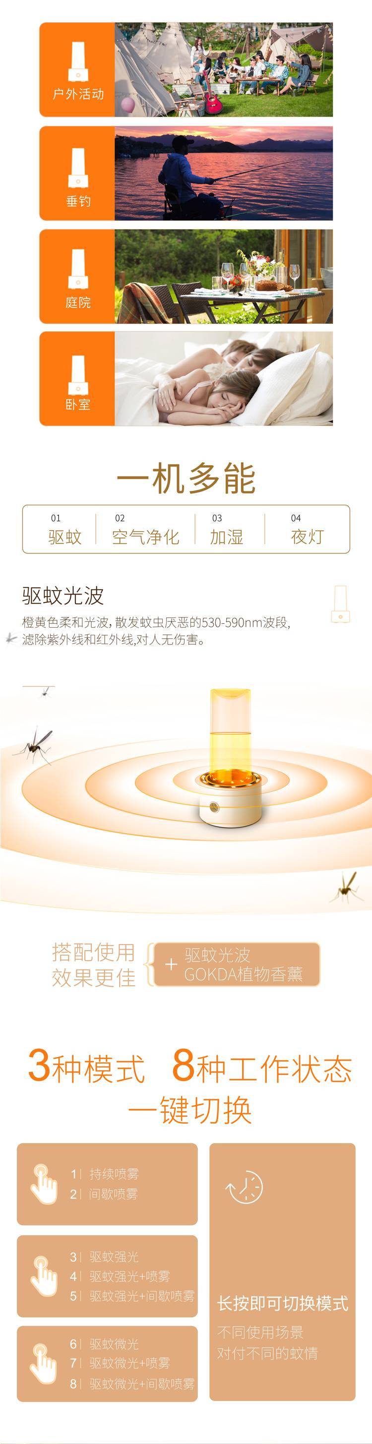户外:在户外可以采用光电驱蚊系统搭载GOKDA植物香薰进行驱赶周边蚊虫;