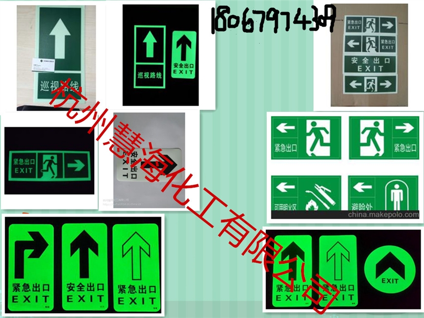 3, 吸光速度快,发光延续时间长,通常只需5-10分钟可持续在暗处发光10小时以上,在消防突发事故中起到信息指示逃生作用