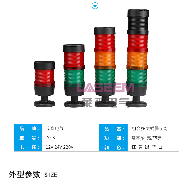 5、适于用恶劣环境下正常工作警示灯通常是用在机械设备等开发。一般情况下,用处可以提供多样的长度的产品的,有灯罩组合的构造,需要时一边方向的灯罩可以组合复合颜色。此外,还可以根据光源形式的不同,分为:1灯泡旋转灯;2LED闪光灯;3氙气灯管频闪灯,其中LED闪光形式的是灯泡旋转形式的升级版,使用寿命更长,更节能,更环保!