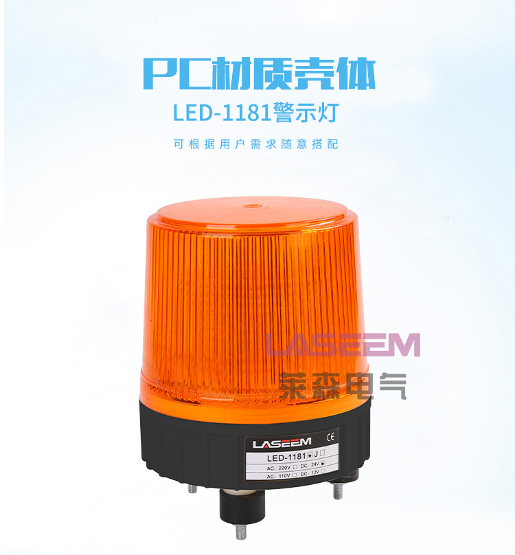 5、适于用恶劣环境下正常工作警示灯通常是用在机械设备等开发。一般情况下,用处可以提供多样的长度的产品的,有灯罩组合的构造,需要时一边方向的灯罩可以组合复合颜色。此外,还可以根据光源形式的不同,分为:1灯泡旋转灯;2LED闪光灯;3氙气灯管频闪灯,其中LED闪光形式的是灯泡旋转形式的升级版,使用寿命更长,更节能,更环保!