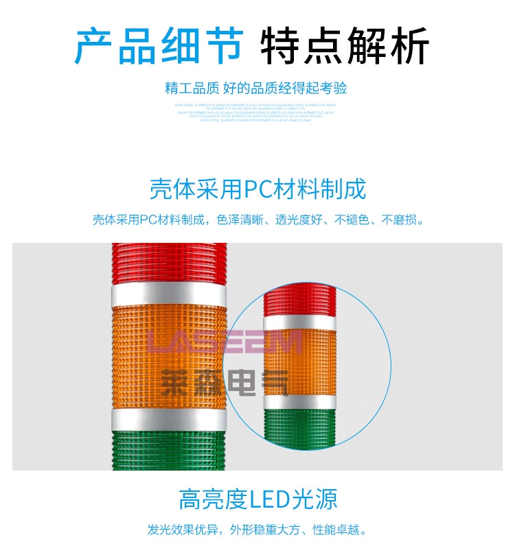 5、适于用恶劣环境下正常工作警示灯通常是用在机械设备等开发。一般情况下,用处可以提供多样的长度的产品的,有灯罩组合的构造,需要时一边方向的灯罩可以组合复合颜色。此外,还可以根据光源形式的不同,分为:1灯泡旋转灯;2LED闪光灯;3氙气灯管频闪灯,其中LED闪光形式的是灯泡旋转形式的升级版,使用寿命更长,更节能,更环保!