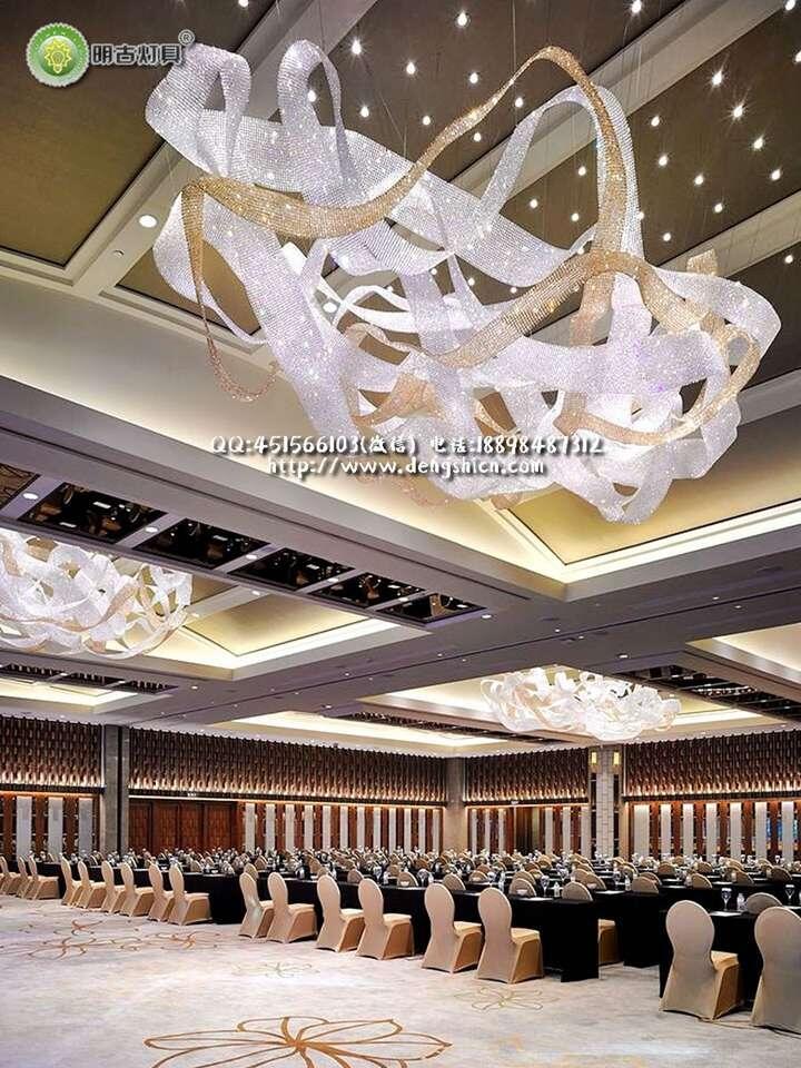 水晶飘带工程灯 宴会厅水晶灯 多功能厅水晶灯 彩色飘带工程灯定制