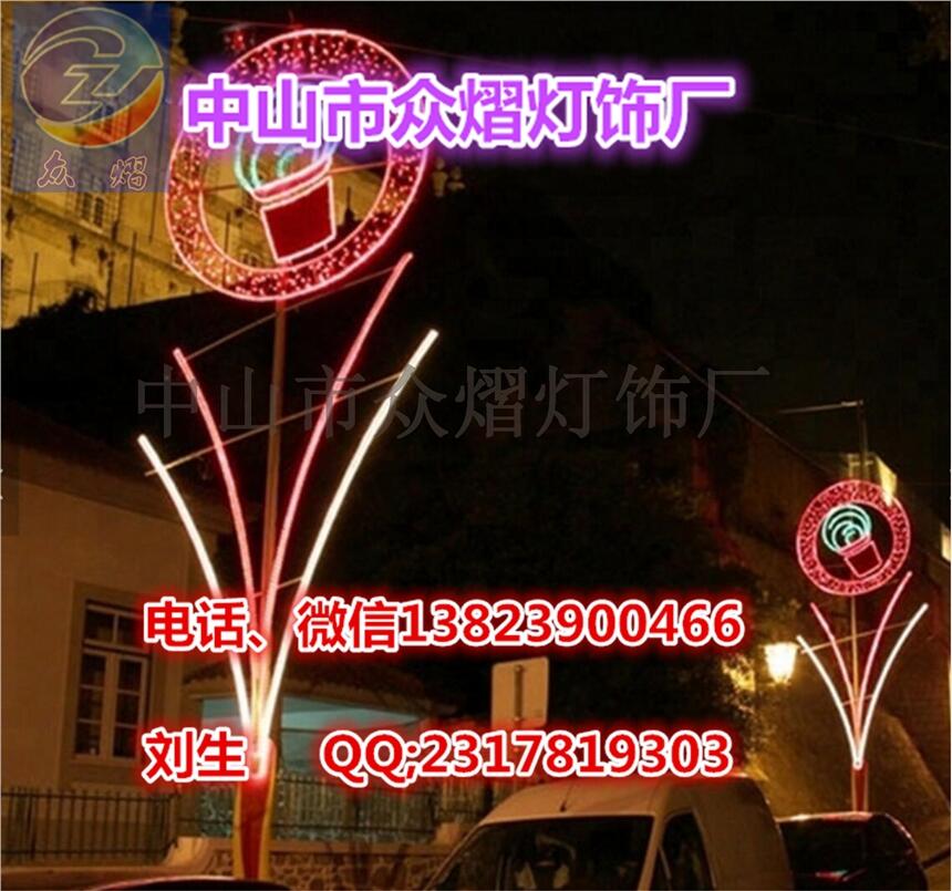 LED图案灯,街道灯,造型灯,灯画,灯串: 产品描述: 1.工作电压:220V (也可根据国家不同,要求不同,制作不同电压的产品) 2.产品尺寸:100*100CM (可根据客人的实际尺寸定做) 3.产品使用寿命:60000小时。 4.灯饰产品:φ10MM小圆二线彩虹管(彩虹管的胶料为抗紫外线高耐寒PVC料,可在零下40度下测试使用,户外用防水可达到IP65,不易老化及褪色)+高防水LED灯串(全铜线灌胶LED灯串,IP65 5.本产品内包装用气泡袋+进口牛皮纸包扎,外面用铁框保护,在运输过程中不易受损。 6.本产品安装简单,公司配套安装说明书。 8.本产品安全可靠,所有固件和材料都是经过科学核算,户外老化测试试验,抗风,防水,防锈,产品安全,用户可放心使用。 产品应用:路灯杆上,街道之间,娱乐场所,节假日点缀,装饰店面,酒吧,街道,车道等装饰用。 产品质量保证:一年保修,如有特别严重的质量问题而不能维修的,我公司无条件更换新的产品.在保修期过后如需维修的,我公司也将继续服务。