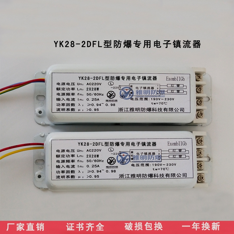 本公司研制生产的YM28-2xDFL型高效节能防爆电子镇流器主要应用于安装28W单管双脚荧光灯(T8、T12)的防爆荧光灯具的装置。