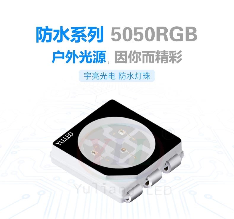 防水系列5050RGB 1.5H LED灯珠应用:软硬灯条、模组、点光源、护栏管、LED显示屏等