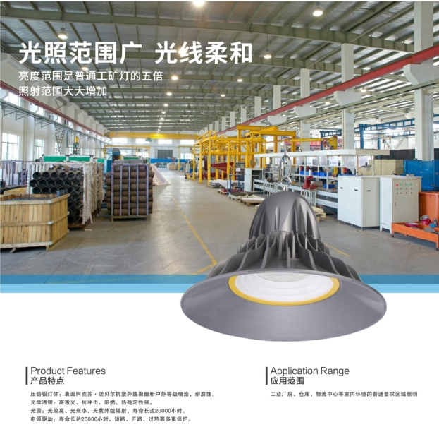 适用于工业厂房、仓库、机场、车站、购物中心、体育场馆、物流中心等室内环境的普通要求区域照明