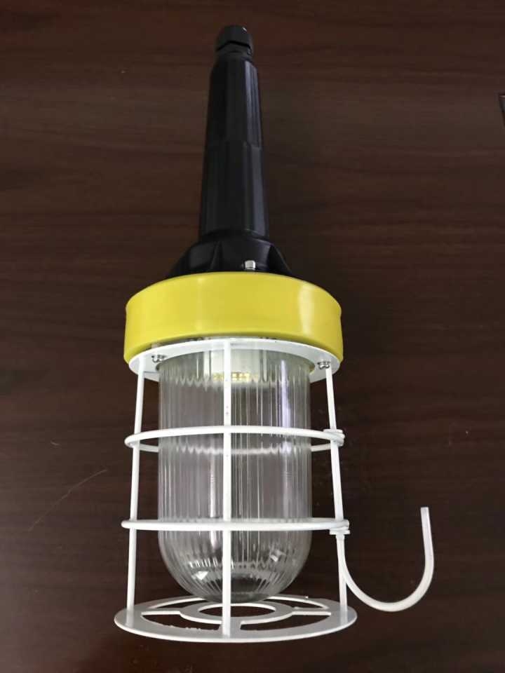 防爆空灯体外接电源线,灯体可以装100瓦白炽灯泡,60瓦节能灯,10瓦LED灯泡,E27灯头,灯体风手持柄,E27灯头,钢化玻璃罩,钢丝罩,钢丝罩上有挂钩,挂钩方便随时壁挂,底部与地面垂直设计,方便随处放平。