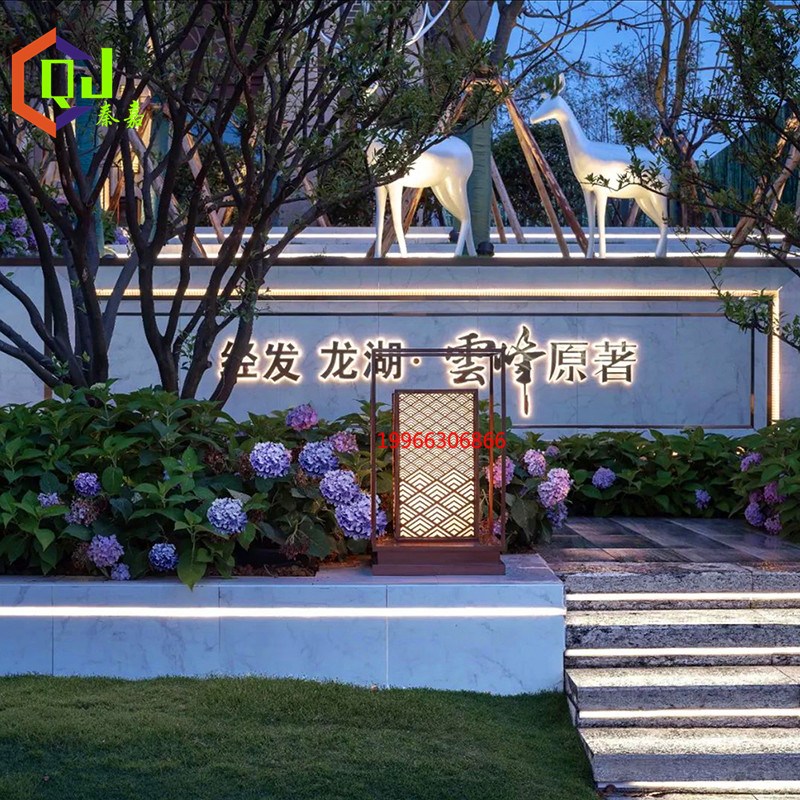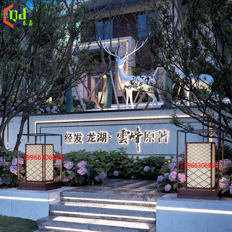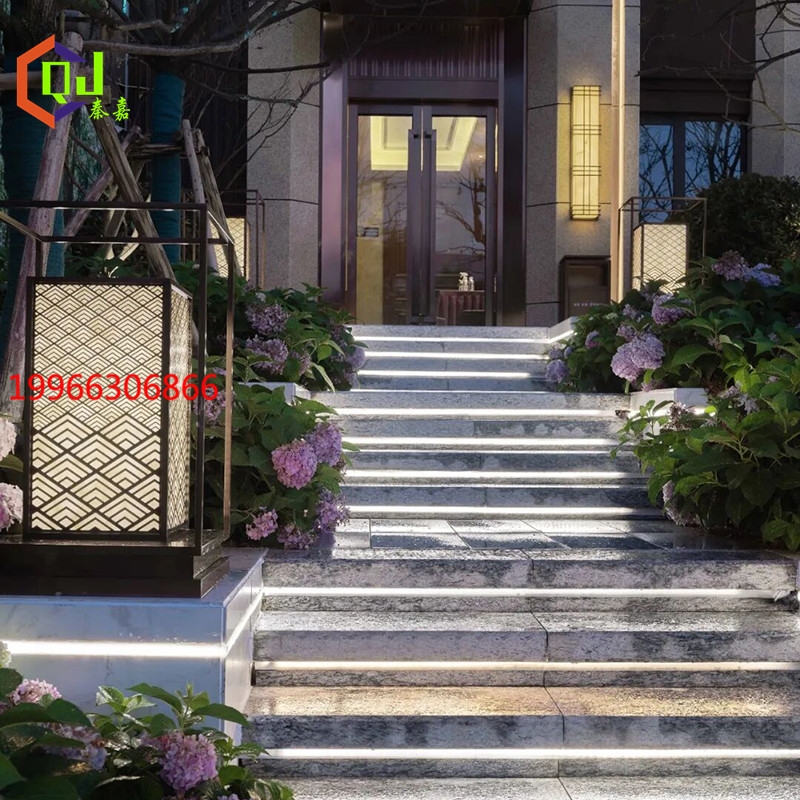仿云石属示范区入口柱头灯工厂定做玫瑰金花园台阶灯厂家直销