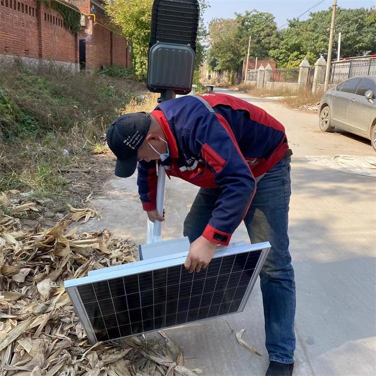 1、太阳能板固定在太阳能支架上,灯头固定,然后支架与挑臂固定到主杆连接线穿到调控箱