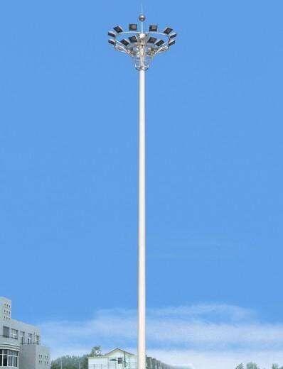 1、灯杆高度15-50米,灯杆采用多边形(通常为8边/12边/16边)拔销杆,插接式结构,(20米以下分两节,壁厚6mm/8mm;25米-30米分三节壁厚6/8/10mm,35米-40米分四节,壁厚6/8/8/10或6/8/10/12)插接长度插接处端直径的1.5倍,灯盘为框架结构;底部法兰为圆形。