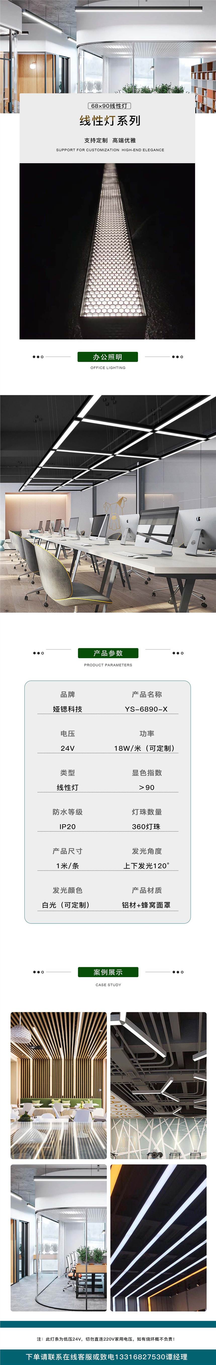 线性灯68×90商用吊线灯120°上下发光带蜂窝面罩内置电源220V