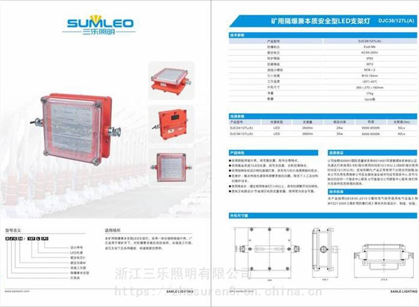 矿用隔爆兼本安型LED支架灯DJC36/127L(A) 矿用支架灯产品参数: