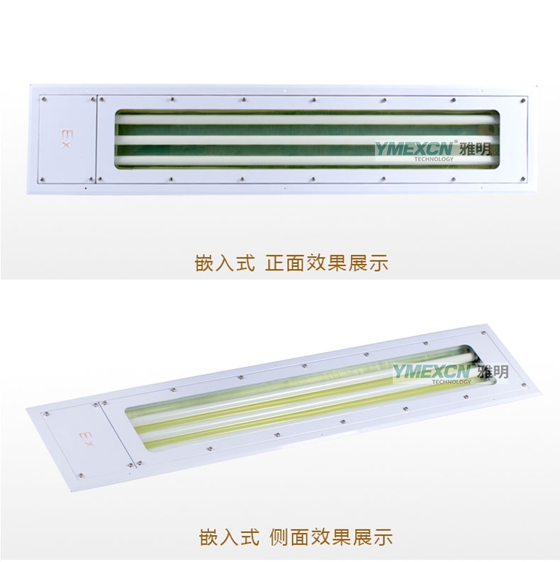 产品特色:1200mm长防爆洁净荧光灯 3*18W嵌入式防爆平板灯