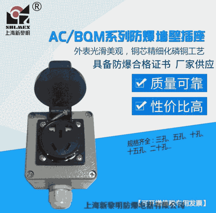 新黎明防爆墙壁五孔插销AC-10A防爆插头插座BCX