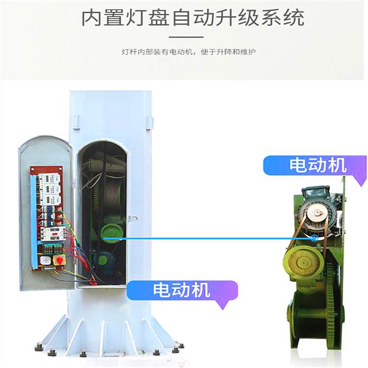 5)高杆灯采用电动升降机构,电动方式可以点动,断电时要求可以手动操作。